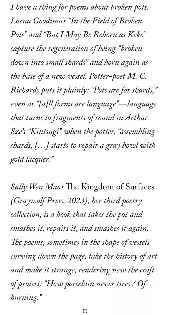 My series of interviews with women writers on visual culture and politics for the LA Review of Books continues with another installment. This time, I’m in conversation with poet-artist Sally Wen Mao: